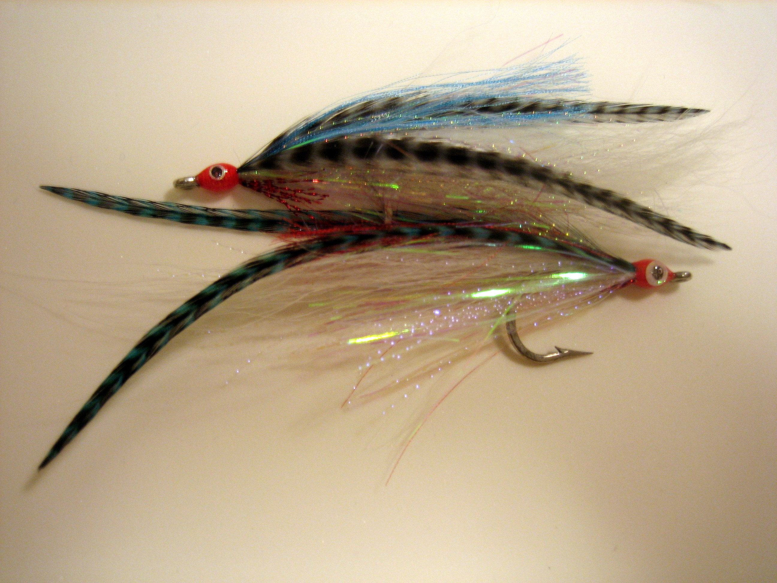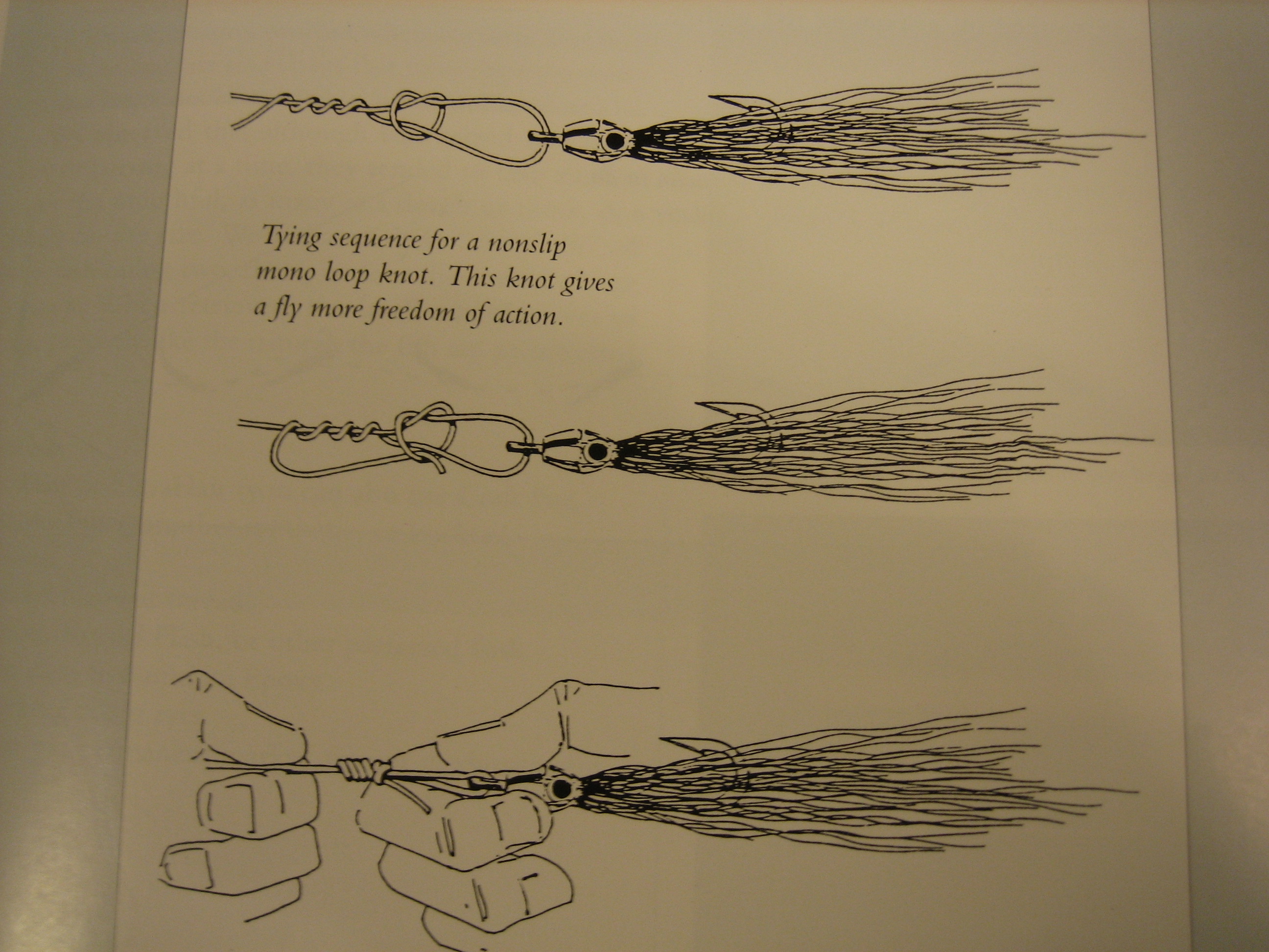 リトリーブは長いストライクで、早めが効果的。どうしても引き終わってから次引っ張り始めるまでにタイムラグができてしまい、多くの場合、とまった瞬間にシーバスたちはプイと見切って反転してしまいます。そこで、ボーンフィッシュでも使っているこのループノットを、初トライした10月上旬から使っています。(参照: Pop Fleyes by Bob Popovics 2001 Page53)。一応、リトリーブとリトリーブの間にほんの少しはカクンと下に振れているとおもいます。統計を取っているわけではないのだけれども、直結したときよりは効果があるとおもいますが皆様はいかように?