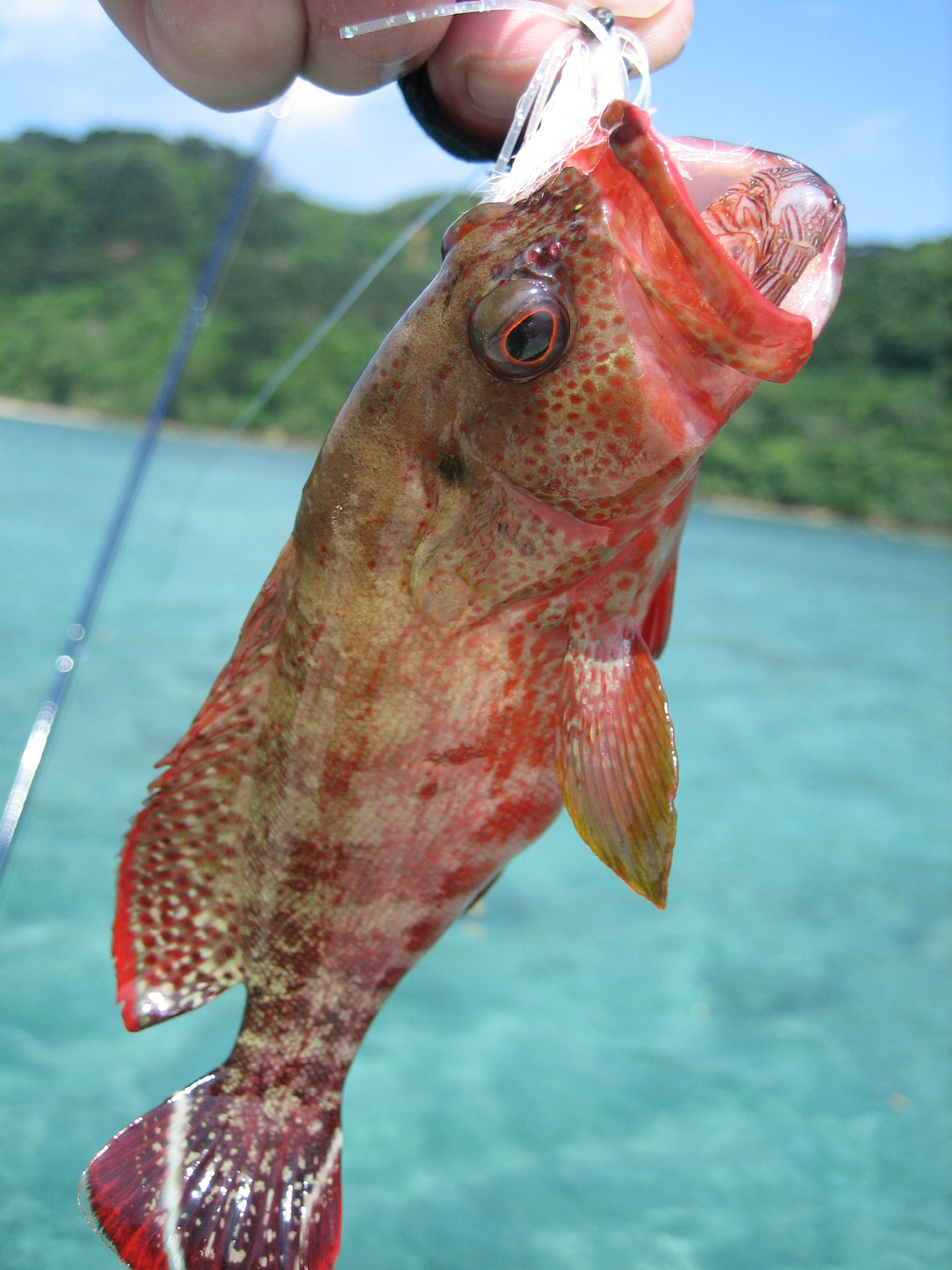 しかし待望のまともな獲物第一号はナガジューミバイであった。今日一番つれているイシミーバイはフライの速度は見切るようだ。第二号もナガジューミーバイ。丸一日フライロッド振り回し3匹。厳しい戦いであった。