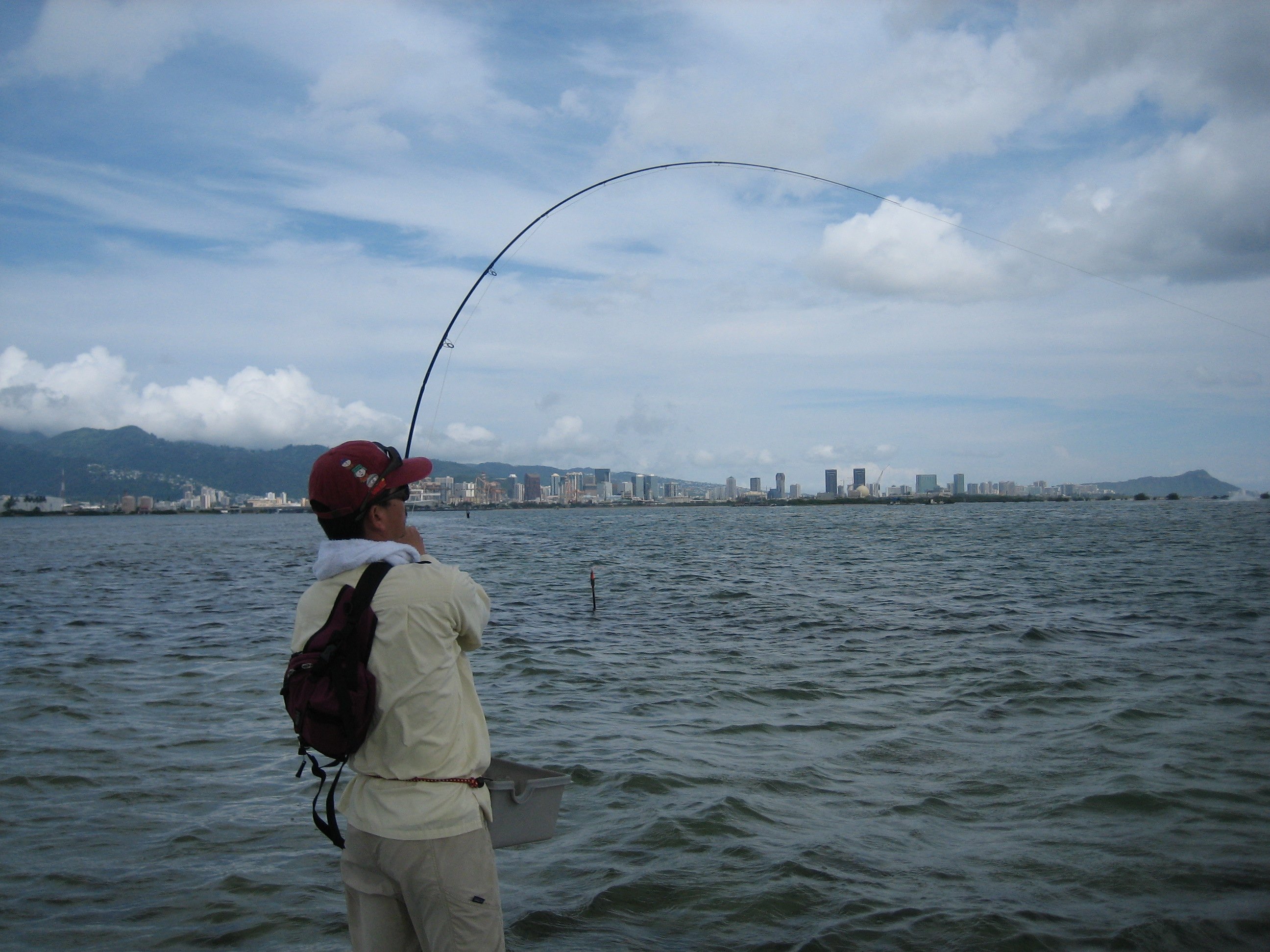 午後、週末だけあってわれわれのいるラグーンに釣り人が続々やってくる。われわれのいるスポットは確保したが潮回りが一日分遅くなる上に今日は何かノリが違う。ボーンの通り道の深みの前に仁王立ちすること裕に1時間半。ふー。