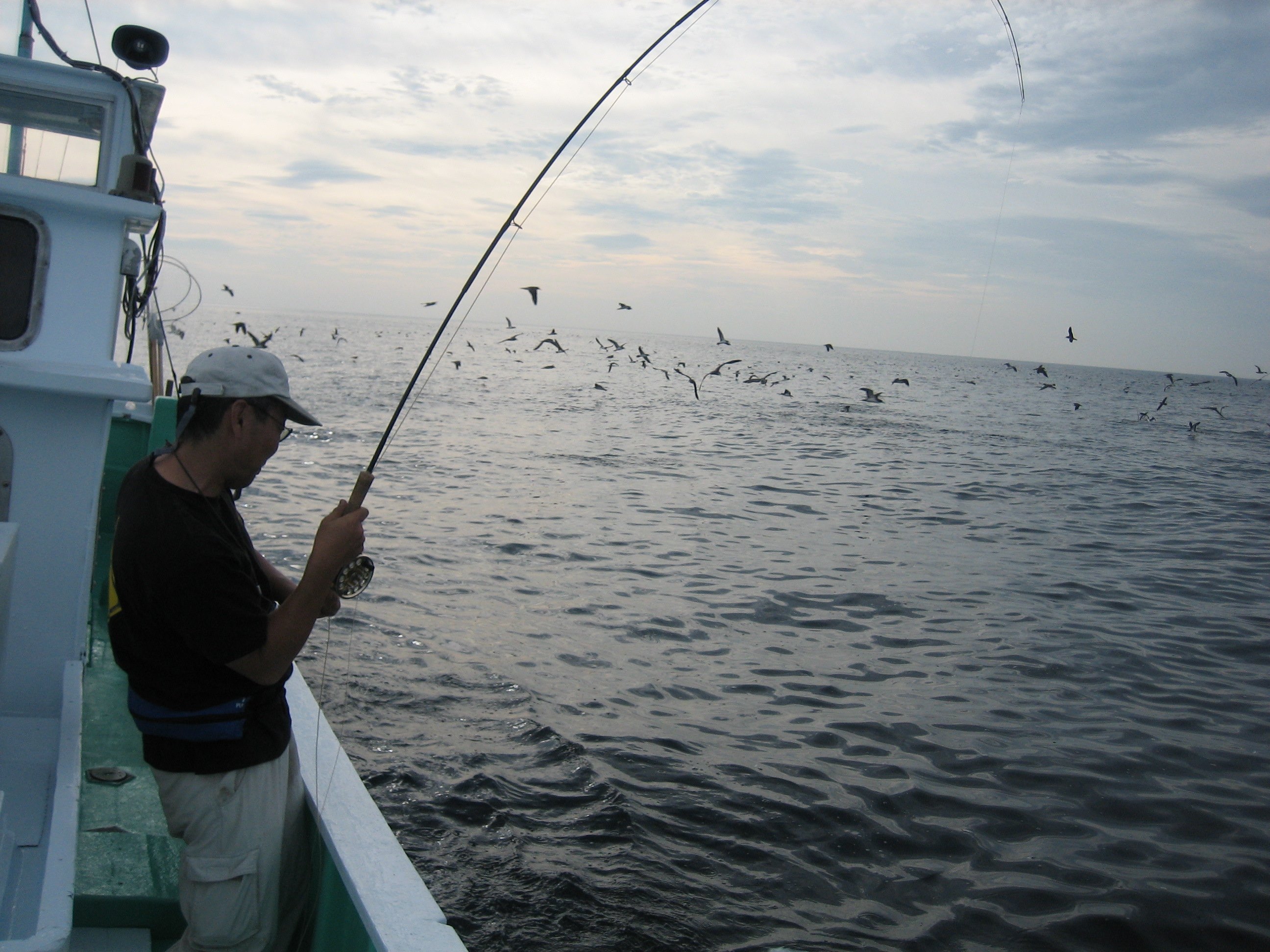 イワシとは違いはっきりではないが水面がワサワサしてnervours waterになっている。フライでは上がったことがないらしいので、K田先生を除きルアーで釣戦。ときおりこのワサワサを割って、バシャッとなるが、今日は神経質らしくなかなか近づけさせてもらえなかったり、すぐ沈んだりする。ルアーは専門でないので(言い訳)、結論から言うとだめでした、ワラサちゃんには遊んでもらえず。しかし、K田さんにはショートバイトがあった、歴史に残る初記録まであといっぽ。残念!チャンスはあるかもしれない。