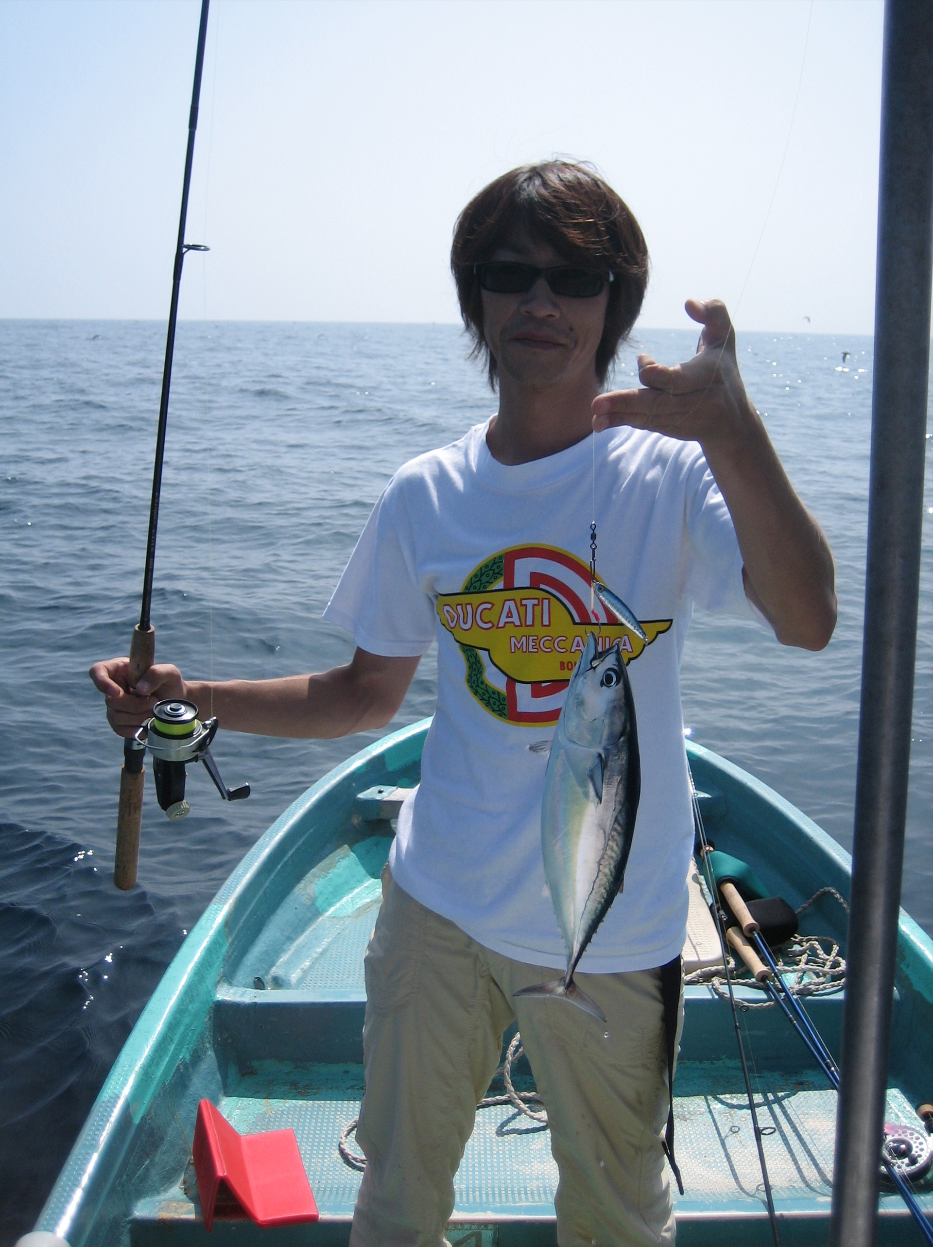 伊東より船外機付のレンタルボートで出動。甲種一等航海士(もちウソ、この中に私の名前が入っている、私の名前を見ると船乗りたちは一様にお前の親は船乗りか?と聞かれるのだ)のlefty hama船長デビュー。台風12号の後の状況に期待していくも船主の親父さんの言うところ潮が暗くてだめらしい。少し北上すると網代のアルテミス2で夏の初めにサバで癒された記憶が遠くないので網代にはいってみよう。岸際をいけばそんなに難しいことではないと思う。