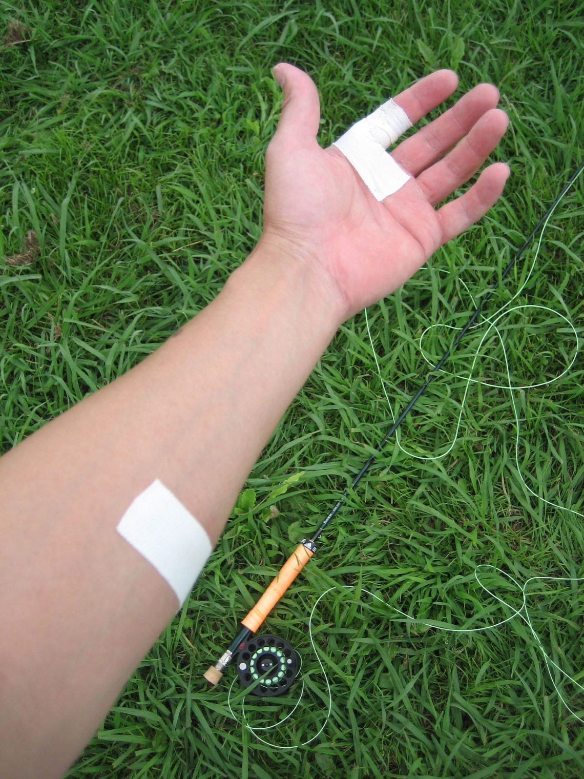 小野スクールに参加するとフライロッドを朝から一日中振り回しているので裸のコルクグリップなんてもうありえない。グリップガード巻いても、まめができてスクールの後半は体力との勝負というより「まめ」との勝負になってしまうのである。