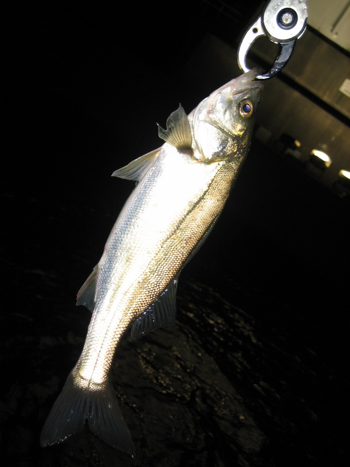 と意気揚々出船。まだイワイミノーで日が昇った後はでないので、ほんの少しだけお試しで後は、たたきました。沈めました。たくさん数えて引っ張りまくりました。でトーナメントと同じくらいの気合でたたきまくり、遊んでくれたのはちびセイゴ一匹のみ。