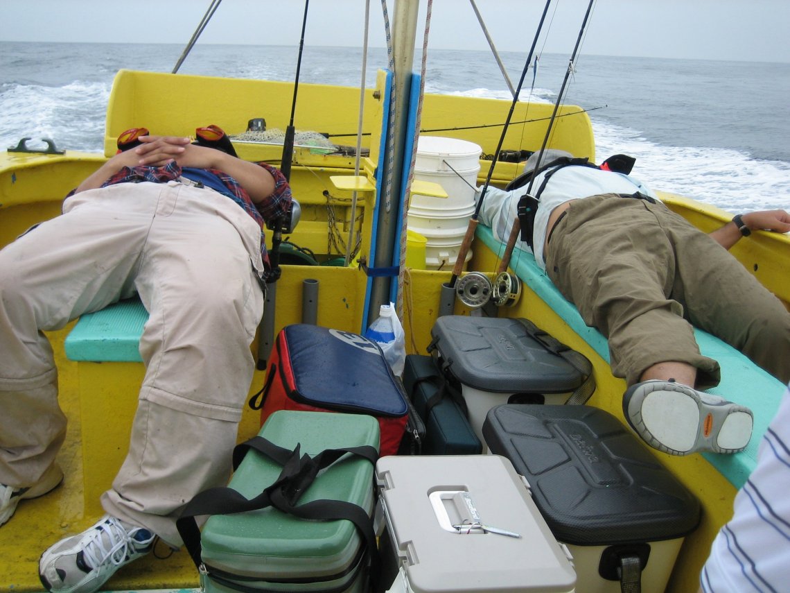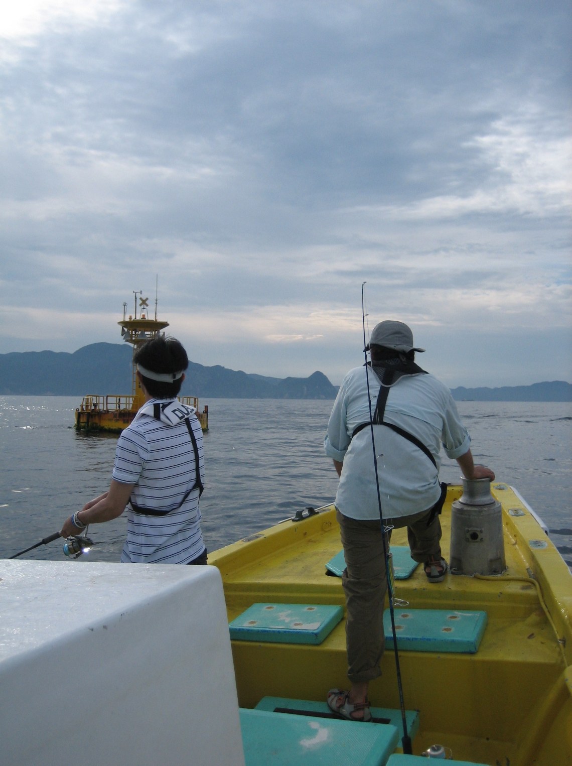 伊勝丸船長も、今年のシイラゲームは初めてらしく気合が入っていました。そしてその数少ない松崎沖?の浮標をたたいてみるも、気配なしです。