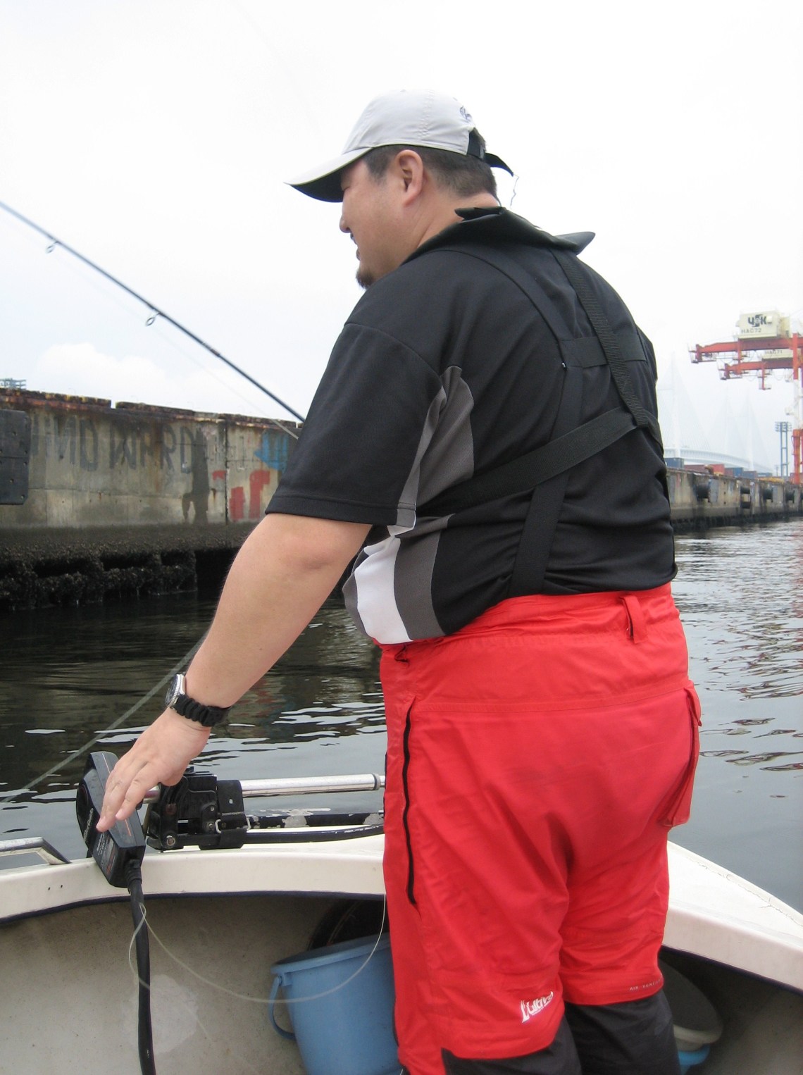 すると、この上級海賊氏、僕に釣りをしろとのたまう。そこで初めてミヨシでふらせてもらたところ、テンポよくでてきました。やっぱり沈める釣り好きです。で、のっとられてしまいました。操縦楽しいそうな。