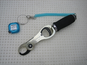 取り込んだ後グリップで持ち上げたまま魚が測れるのだ。特に暑い夏は熱せられたデッキや地面に魚を置くことなく測れるのは魚にはいいんじゃないかな。