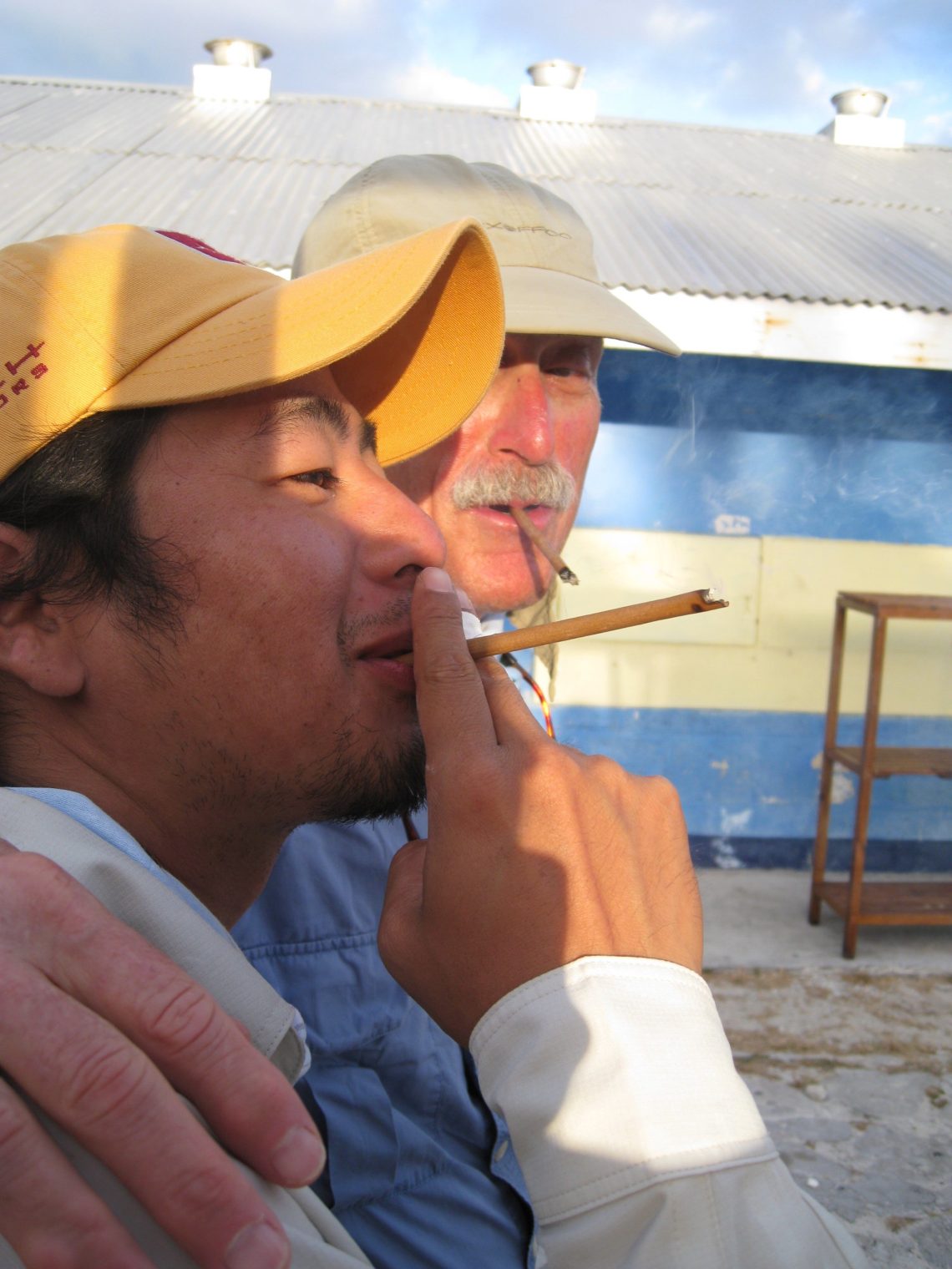 タバコの味はわからないけれど、うまそうだ。地元で取れる葉っぱで巻いた煙草。