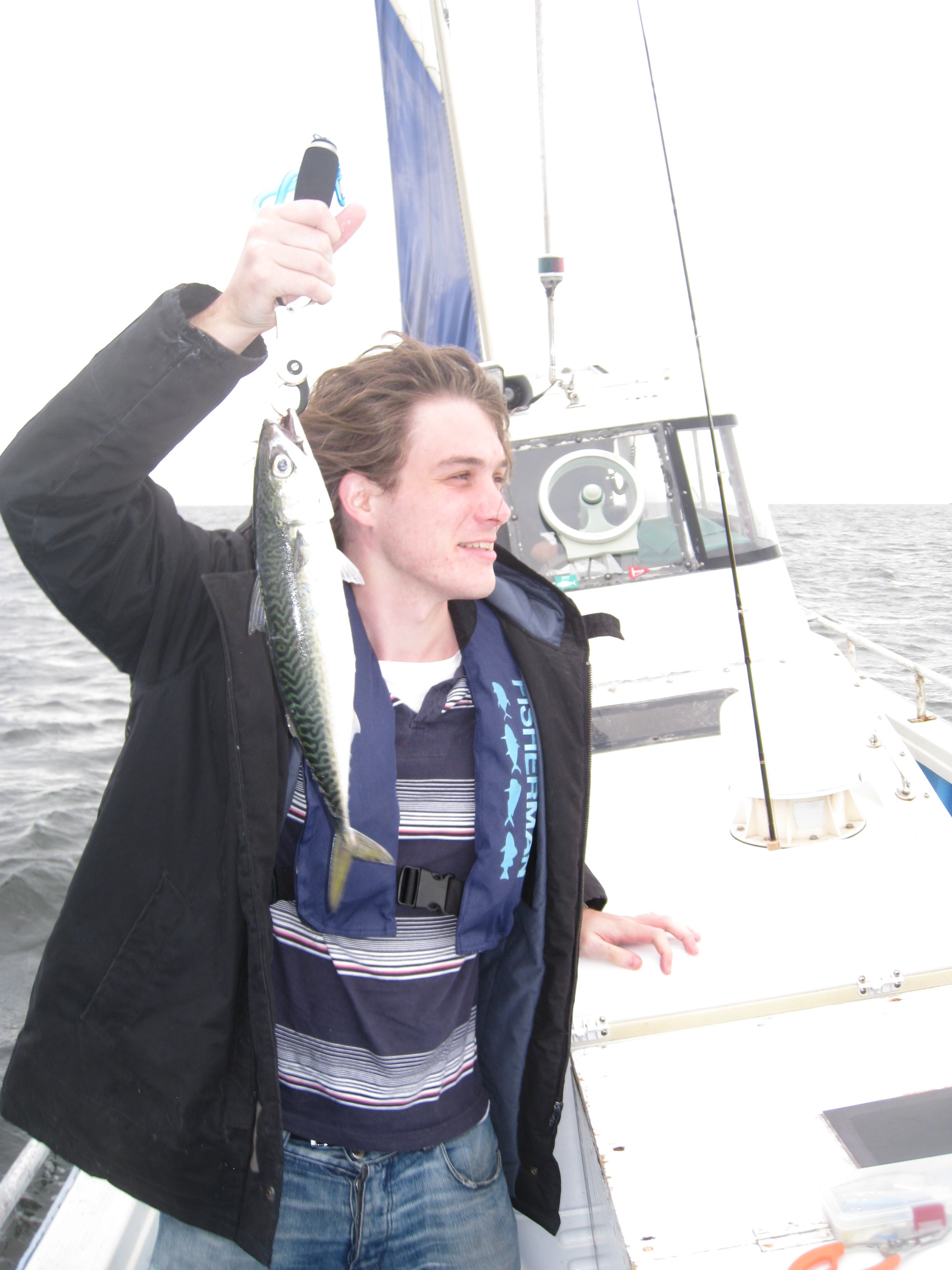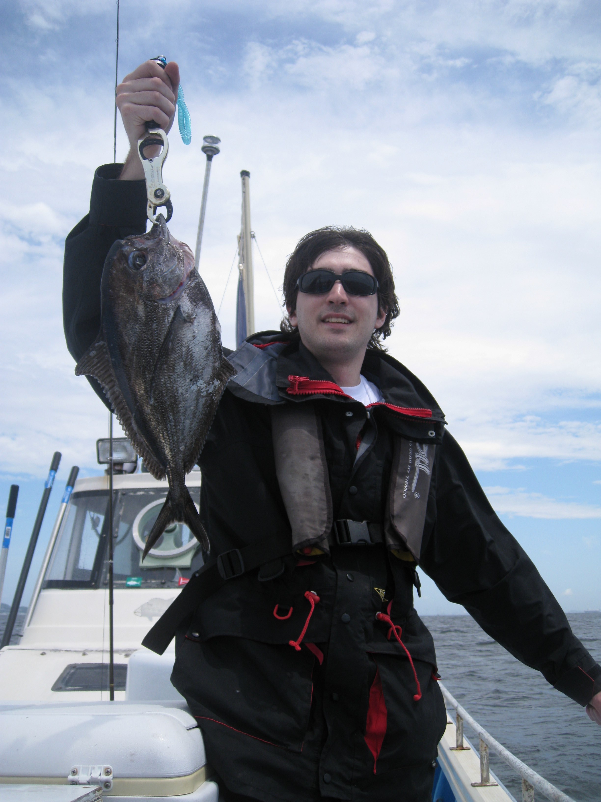 笑顔でないのは、100m以上もリール巻き上げてへとへとになっていたのです。釣り上げたこと自体はとても喜んでいました。