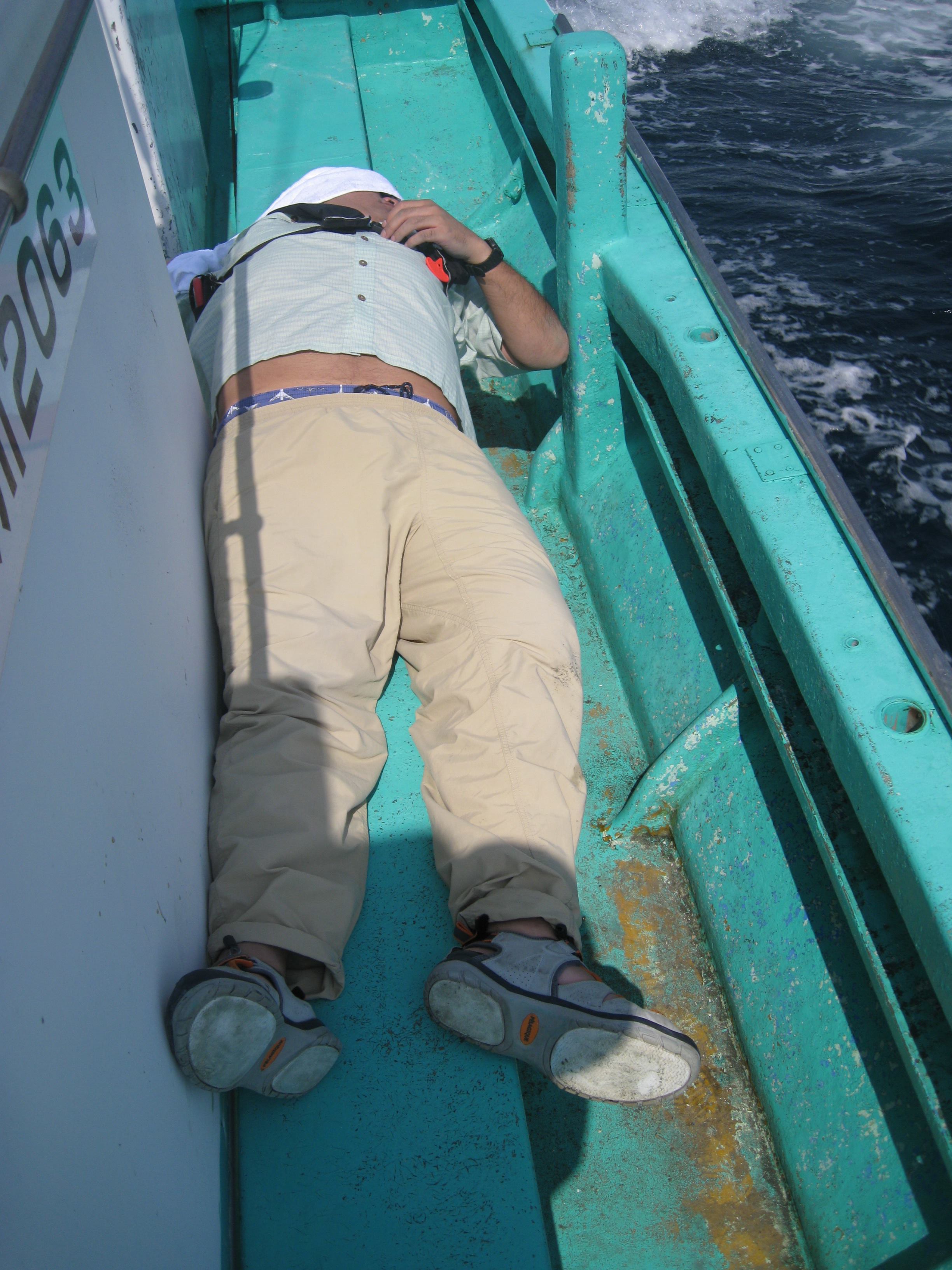 でも本鰹たちが楽しませてくれました。フライマン4人とルアーマン1人で、それなりに楽しませてもらいました。カツオが2~3kgで、ルアーではキメジも3kg級が2本とれました。僕個人的には今まで、カツオゲーム目の肥えたカツオしか相手にしたことがなかったので、朝一番の「なんでも」あり状態、どんなフライでも口にする状態、を経験できたのがうれしかったこと、ただその後、いつものselectiveな小難しいゲームになったのも面白かったです。