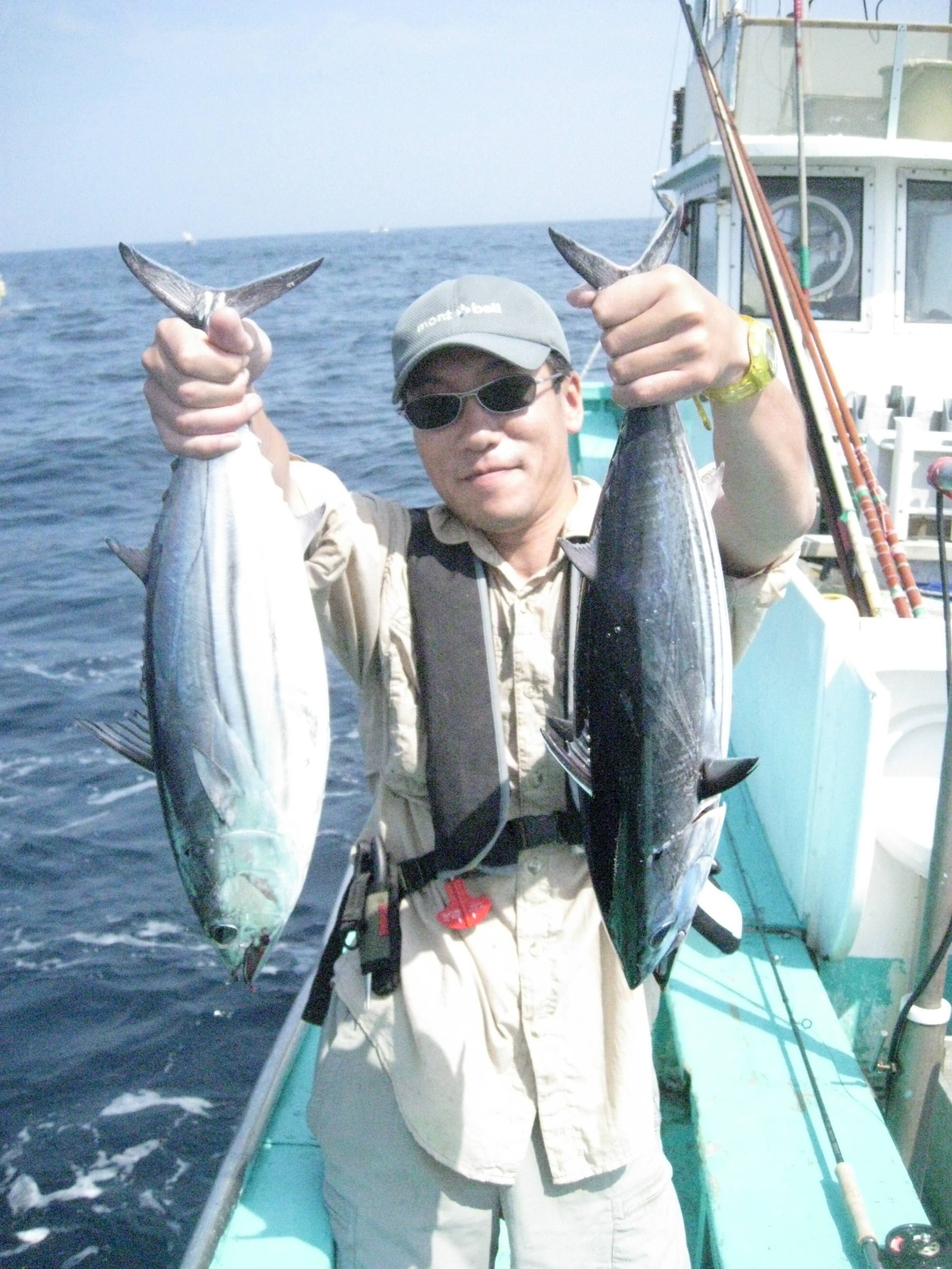 ルアーでも、ティーザーマンきっちりつとめ、でも根はフライマンの、Yさんもしっかり、初ガツオです!ついでに、僕の獲物も持ってもらいました。