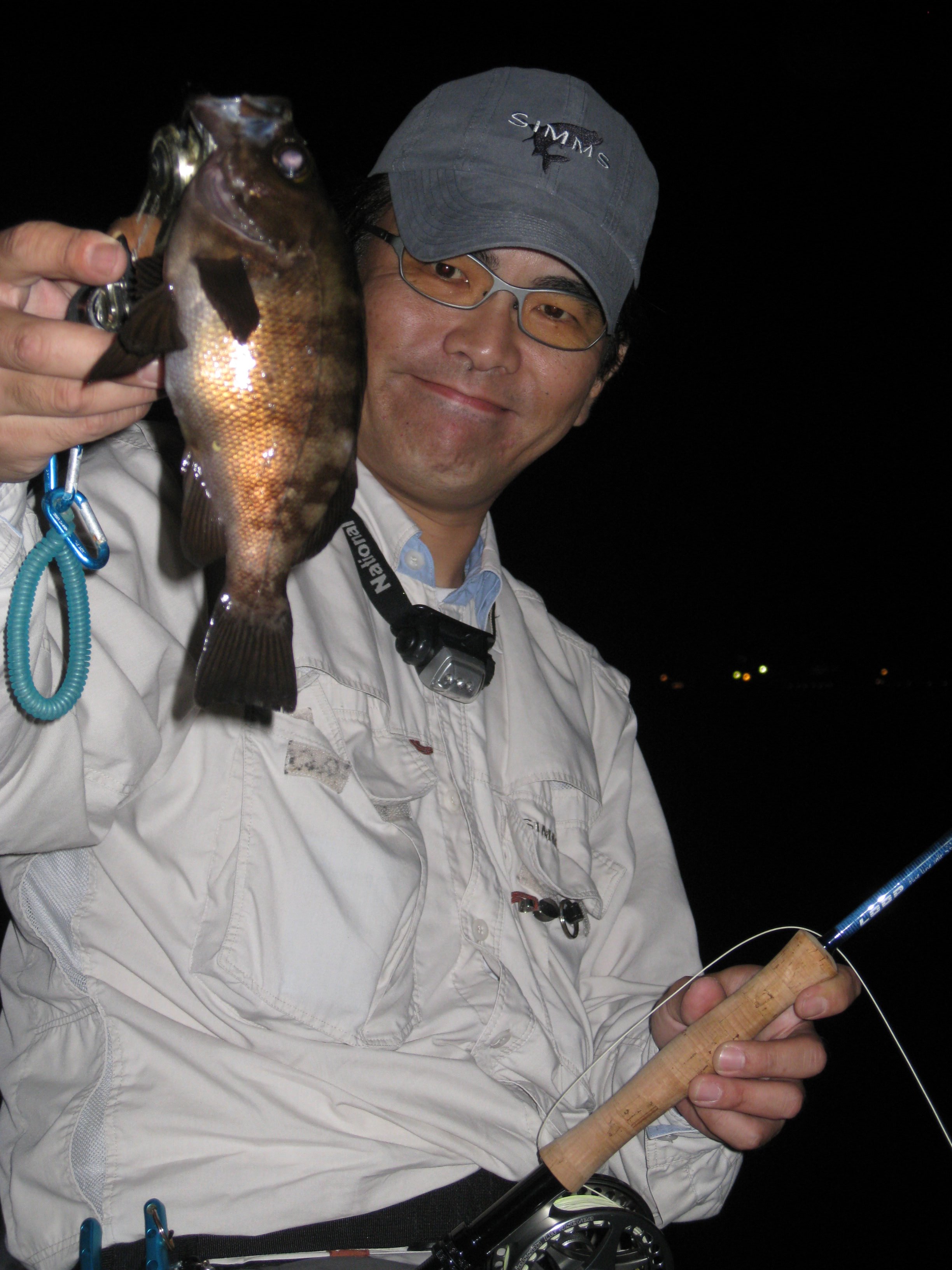 次の晩も状況は変わらずでした。ペリ兄さんも、なんとかかんとかメバル、シーバスそれぞれ一匹ずつ引きづり出して形をつけました。
