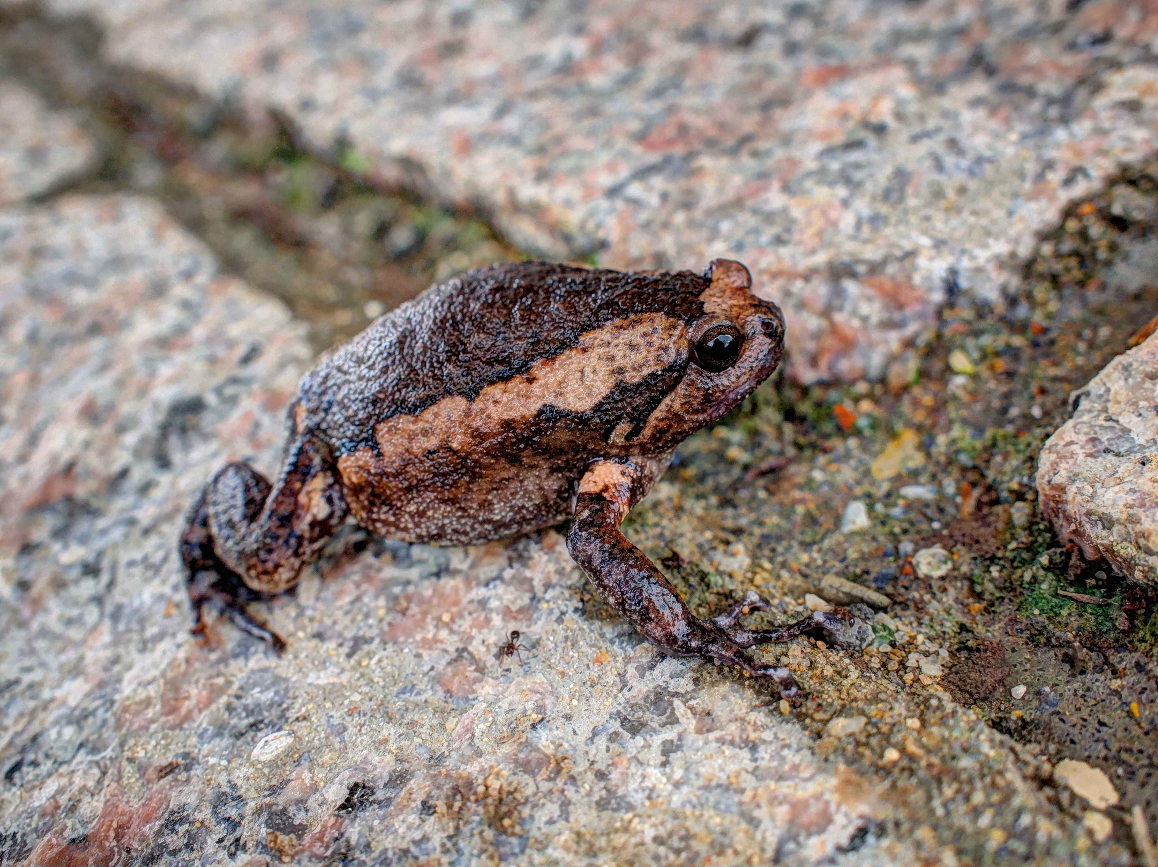 と思っていたところ、別の日に出会ったアジアジムグリガエルちゃん、ヒアリにかまれて2時間くらいひん死状態になっていた。人間がかまれても肢体しびれるくらいだし、ヒアリはカエルくらいなら殺してしまう位という。僕もまた数か所ヒアリにやられた。きっついわ。