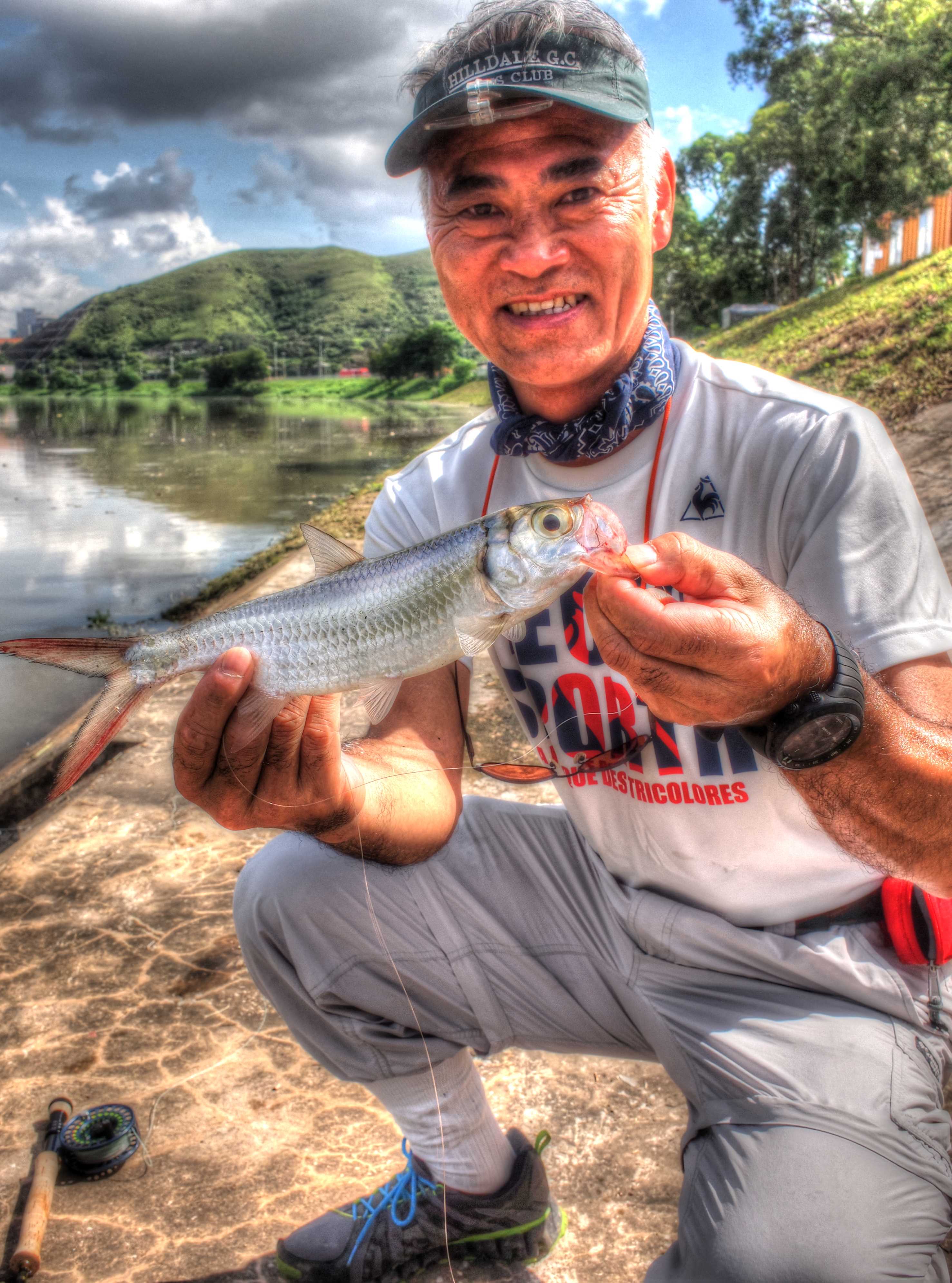 釣行開始間もなく、stlelieさんが持ってきたフライで「カワイワシ」爆釣モードに。彼は北米やヨーロッパにも住まれていたことがありそこで知ったフライパターンをここ香港で投入しあっという間に「カワイワシ」のスイッチを入れられた。