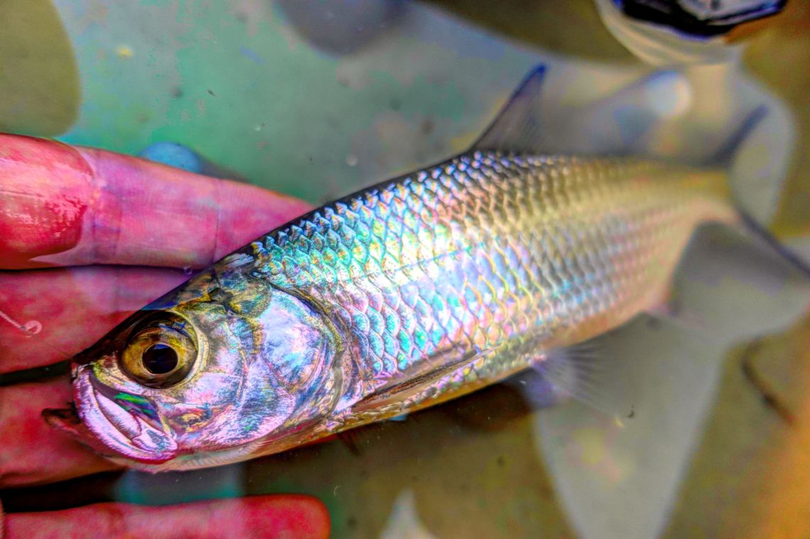 直近あそんでくれた手のひらサイズターポン。4㎝の岩井ミノーを食いきれないサイズがわんさかいてチャーリーで仕留めた