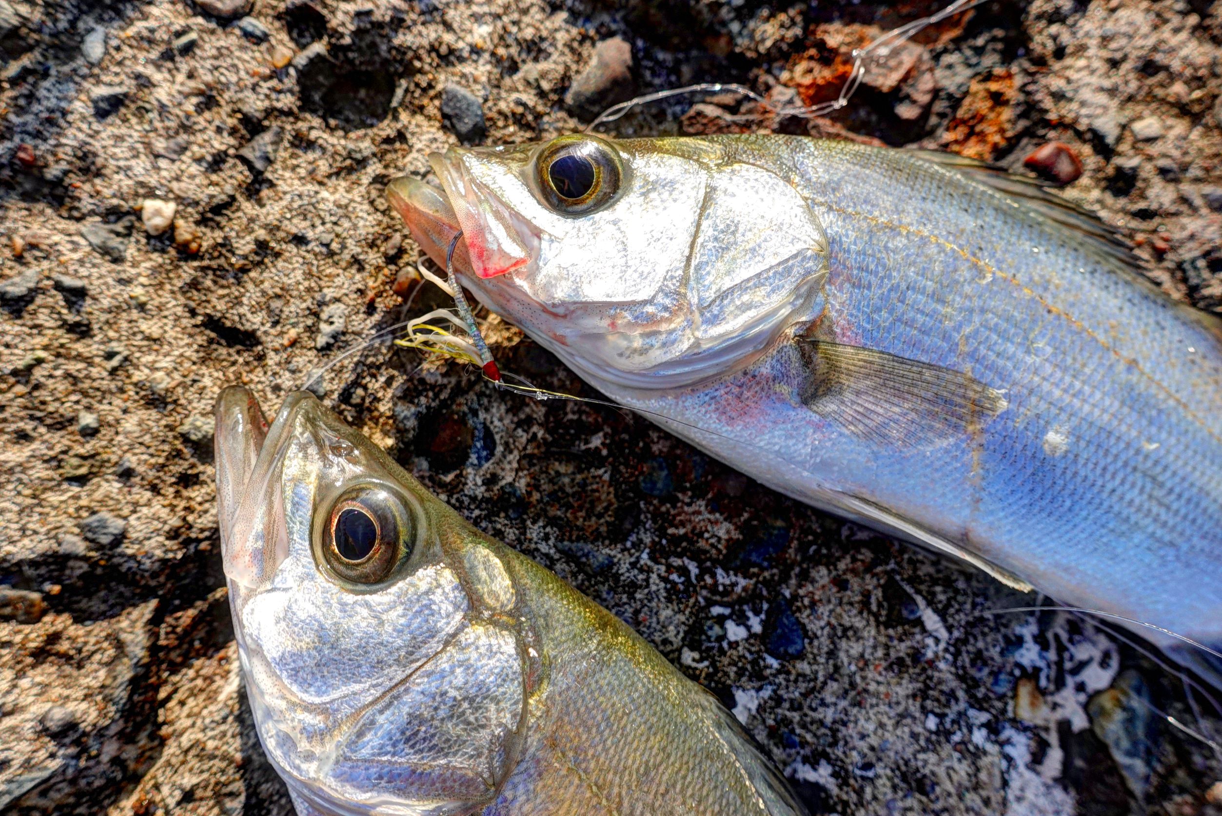 でも、ドロッパーをつけたシステムに、ヒラセイゴが遊んでくれた。シーバスを一荷って初めてだ。