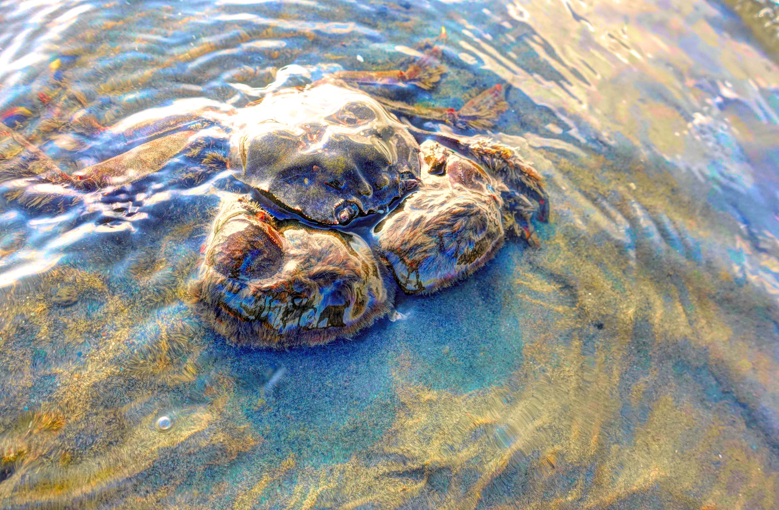 このカニは、ヤマトオサガニというらしい。このカニをキビレたちはバリバリ食べるのだろう。