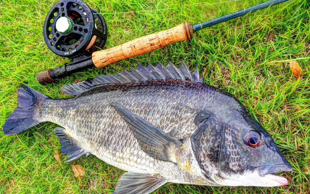 フライリールである程度のドラグがあるので、テンションかけながらリールファイトできる。こんなにやり取り楽しいのって、ヘチ釣りの醍醐味だと思う。アタリは面白くともなんとも無いし、フッキングはほぼ向こう合わせだけれども、竿先水直下からくるかかったあとのトルクは、初動は制御できないという点においてはボーンフィッシュとちょっとだけ合い通じるという気がしなくはない。